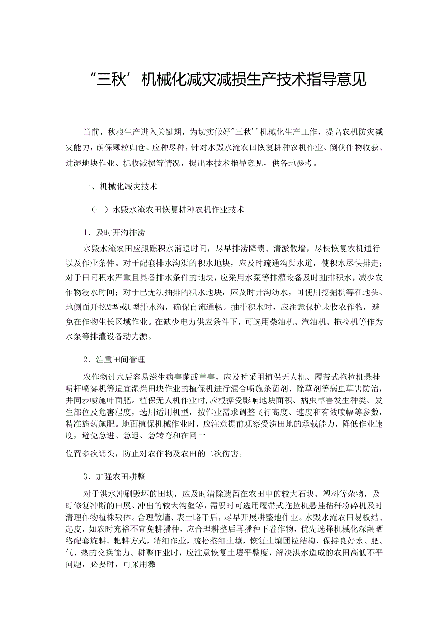“三秋”机械化减灾减损生产技术指导意见.docx