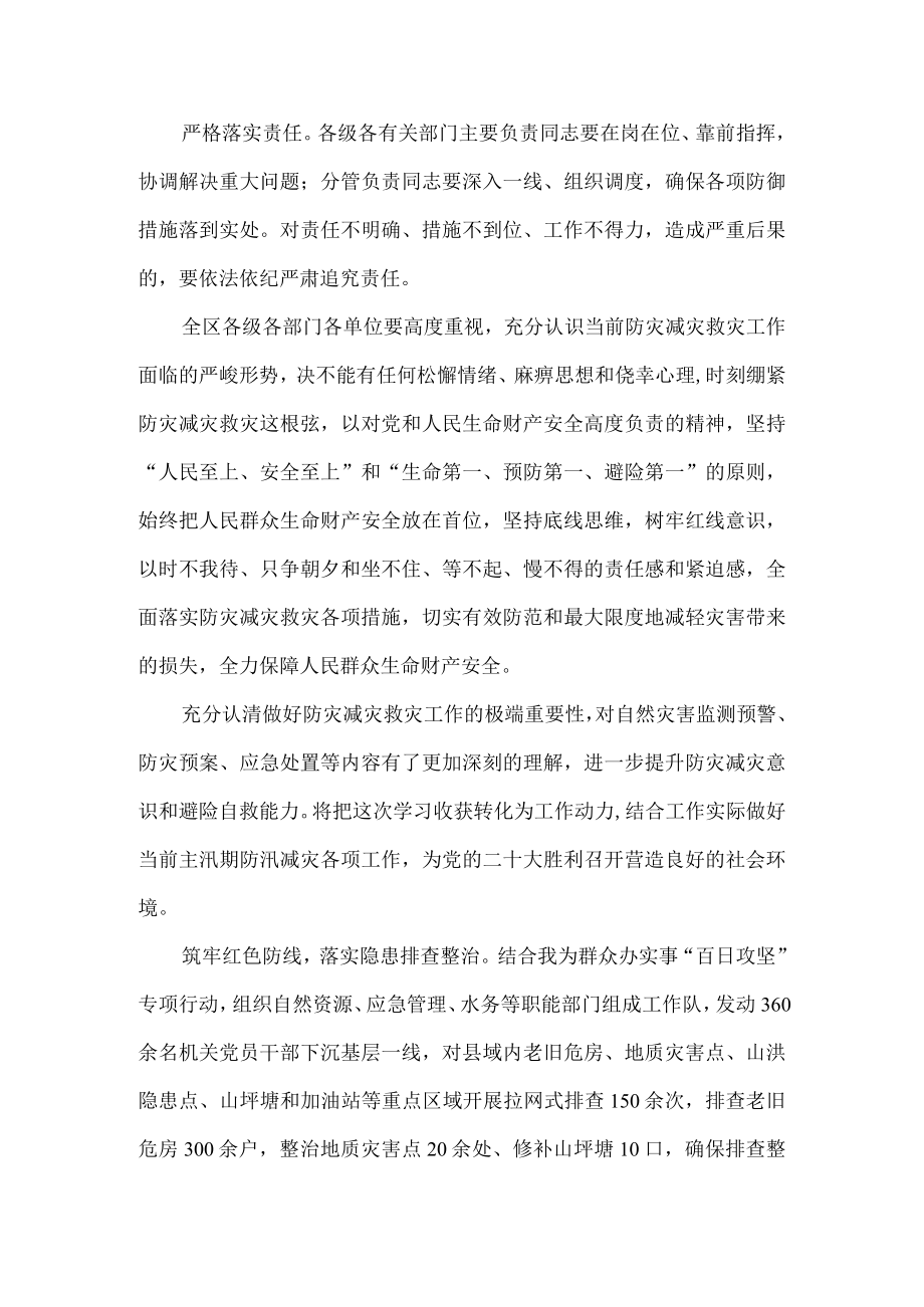 2、。把群众生命安全放在首位,细化实化人员转移避险方案,做到预警到乡、警示到村、责任到人,有险及时转移,绝不允许因险情应对不力造成人员伤亡。要妥善安置受灾群众生活,保障他们有饭吃、有衣穿、有干净水喝、有病能及时就医、有临时安全住处。强化应急处置。加强小水库、尾矿库、山洪地质灾害易发区、蓄滞洪区、城市内涝、南水北调主干渠等重点部位和薄弱环节防范工作,加大巡查防守力度,备足抢险物资器材.,落实抗洪抢险队伍。科学调度洪水。根据实时雨情水情,量化测算水库调蓄能力、河道行洪能力和蓄滞洪区滞洪能力,统筹上下游、左右岸关系,联合运用水库、河道、蓄滞洪区,对洪水实施精准调度。严格落实责任。各级各有关部门主要负责同