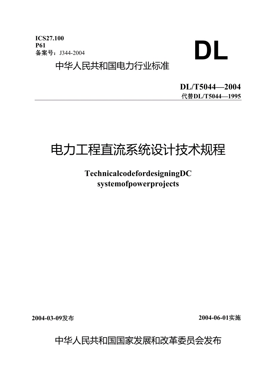 - DLT5044 2004 电力工程 直流 系统 设计 规程