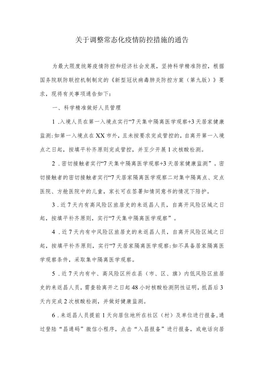 《关于调整常态化疫情防控措施的通告.docx》由会员分享,可在线阅读,更多相关《关于调整常态化疫情防控措施的通告.docx(4页珍藏版)》请在第壹文秘上搜索。