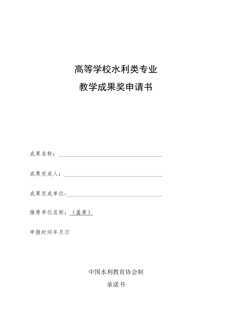 - 高等学校 水利 类专业 教学 成果奖 申请书