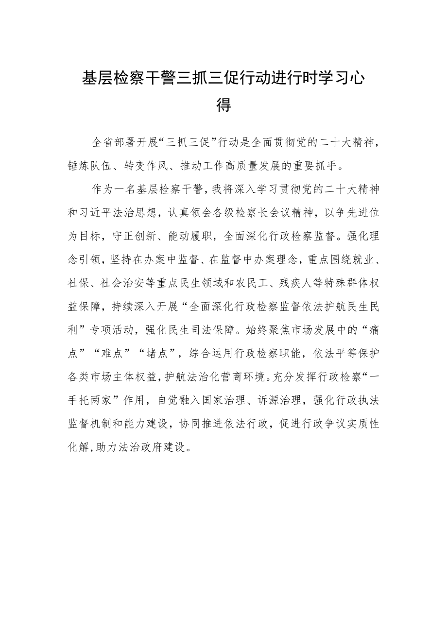 - 基层 检察 干警 三抓三促 行动 进行 学习心得