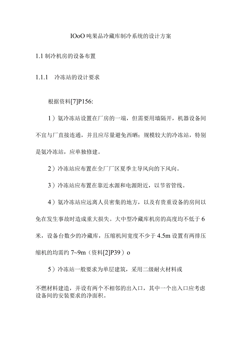 1000吨果品冷藏库制冷系统的设计方案.docx