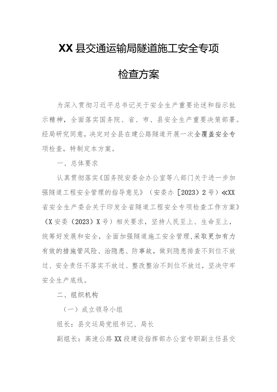 XX县交通运输局隧道施工安全专项检查方案.docx