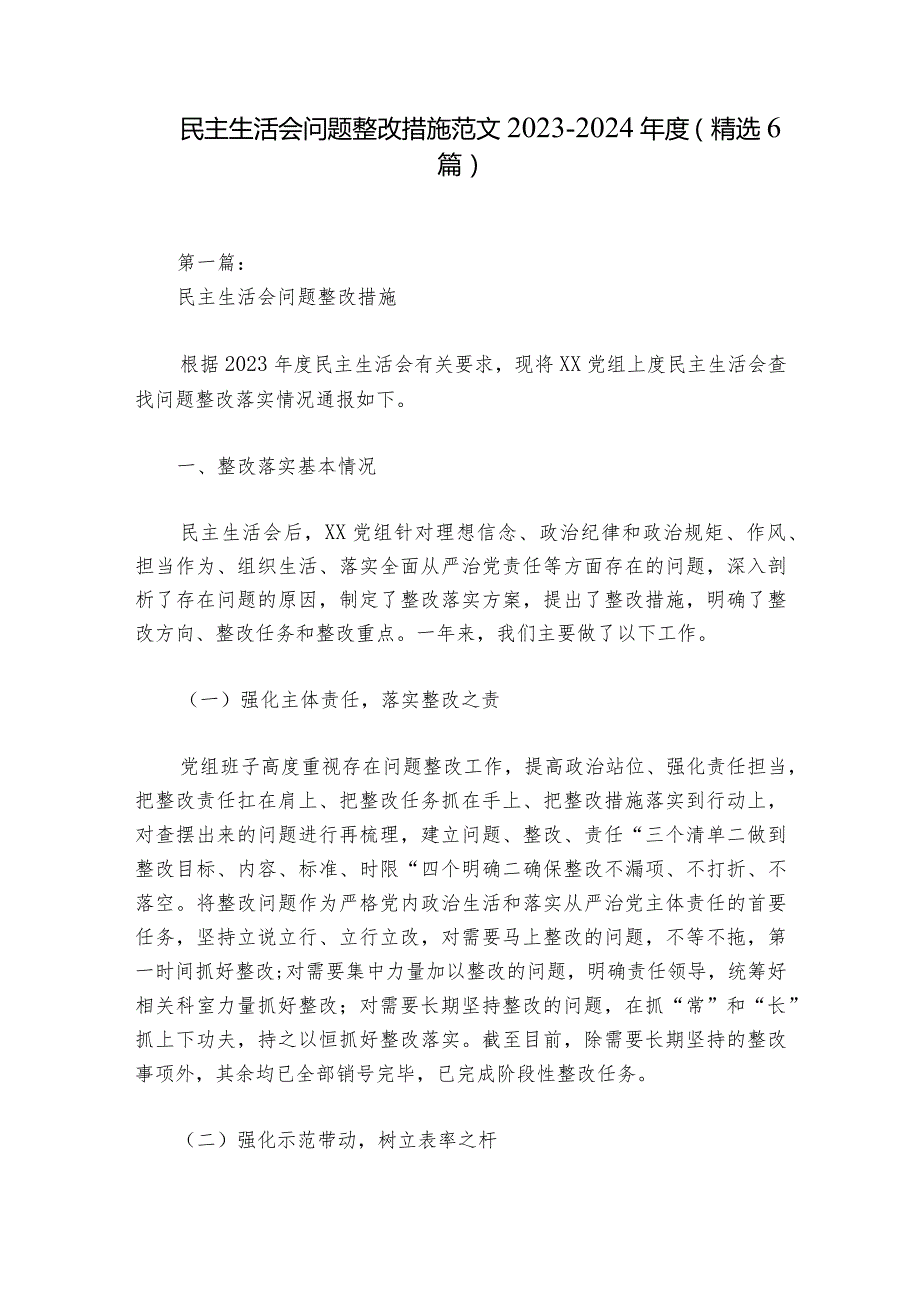 民主生活会问题整改措施范文2023-2024年度(精选6篇)_1.docx