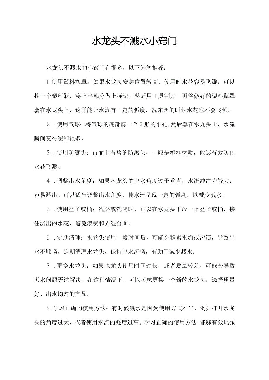 《水龙头不溅水小窍门.docx》由会员分享,可在线阅读,更多相关《水龙头不溅水小窍门.docx(2页珍藏版)》请在第壹文秘上搜索。