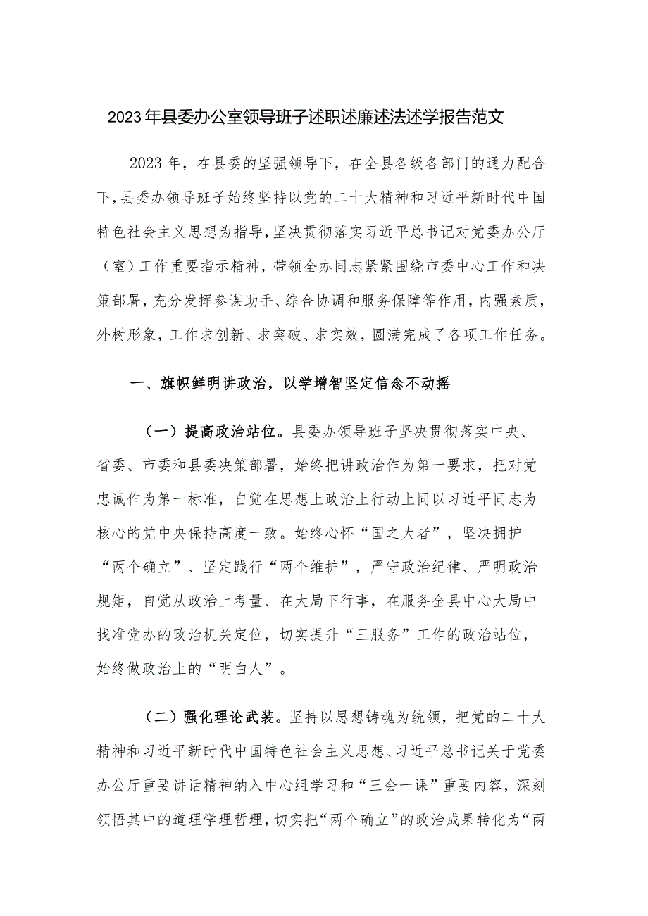2023年县委办公室领导班子述职述廉述法述学报告范文.docx