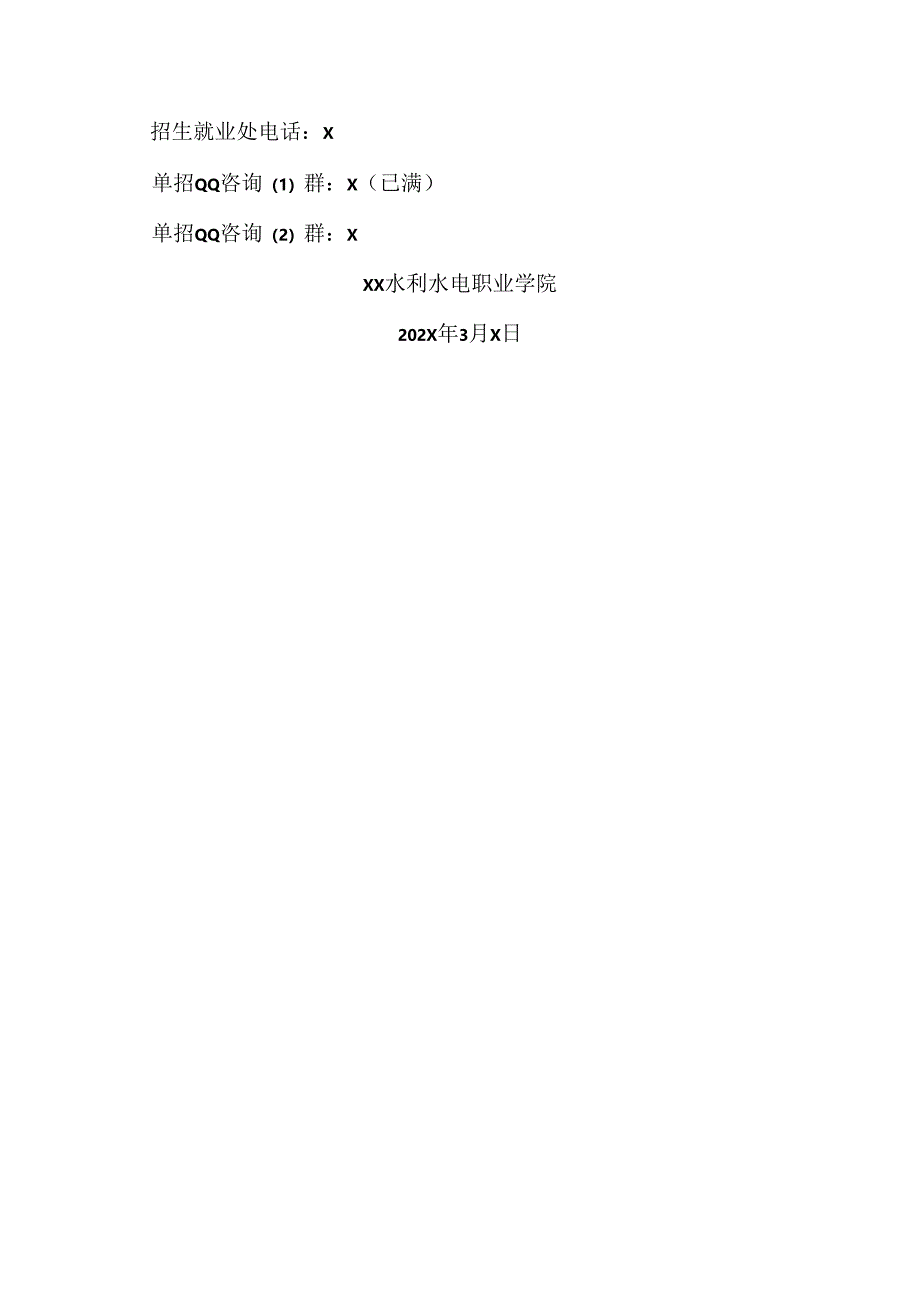 XX水利水电职业学院关于202X年单招若干事项的通知(2024年).docx