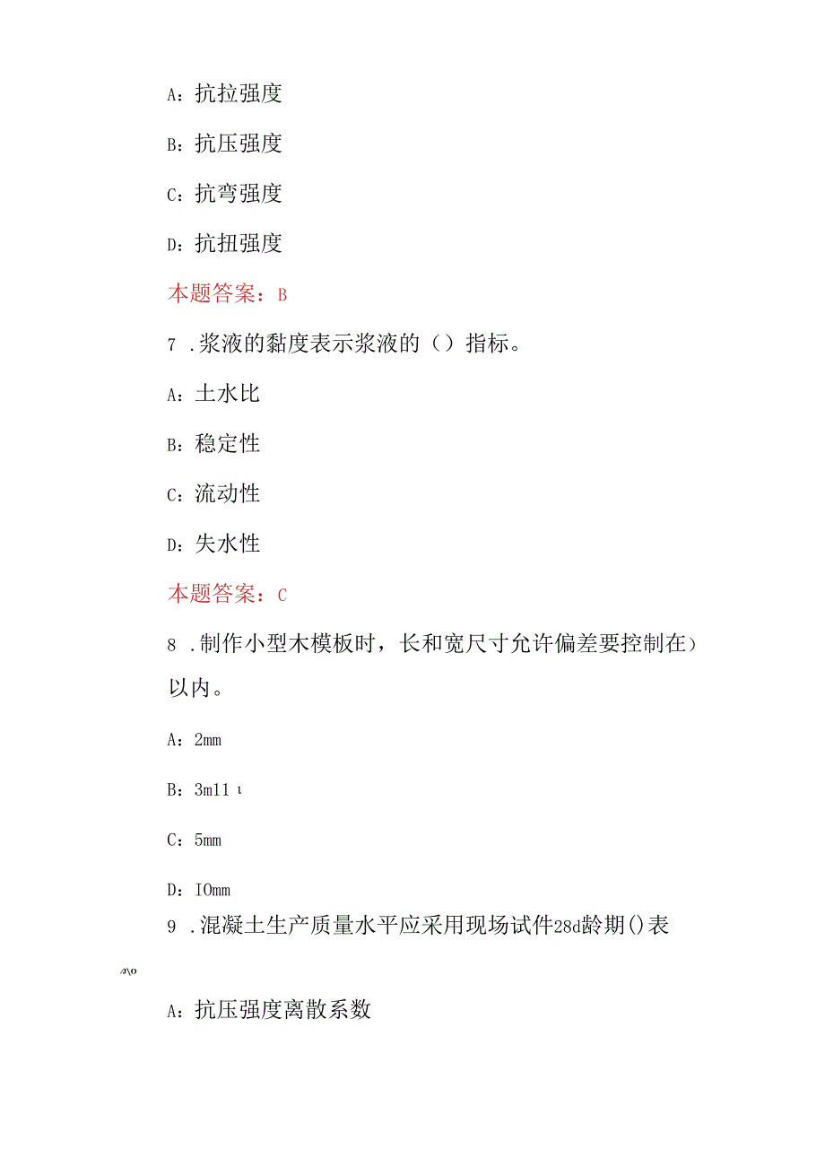 - 2024 水利 质检 技术 检验 监督 技能 理论知识 考试题 题库 答案