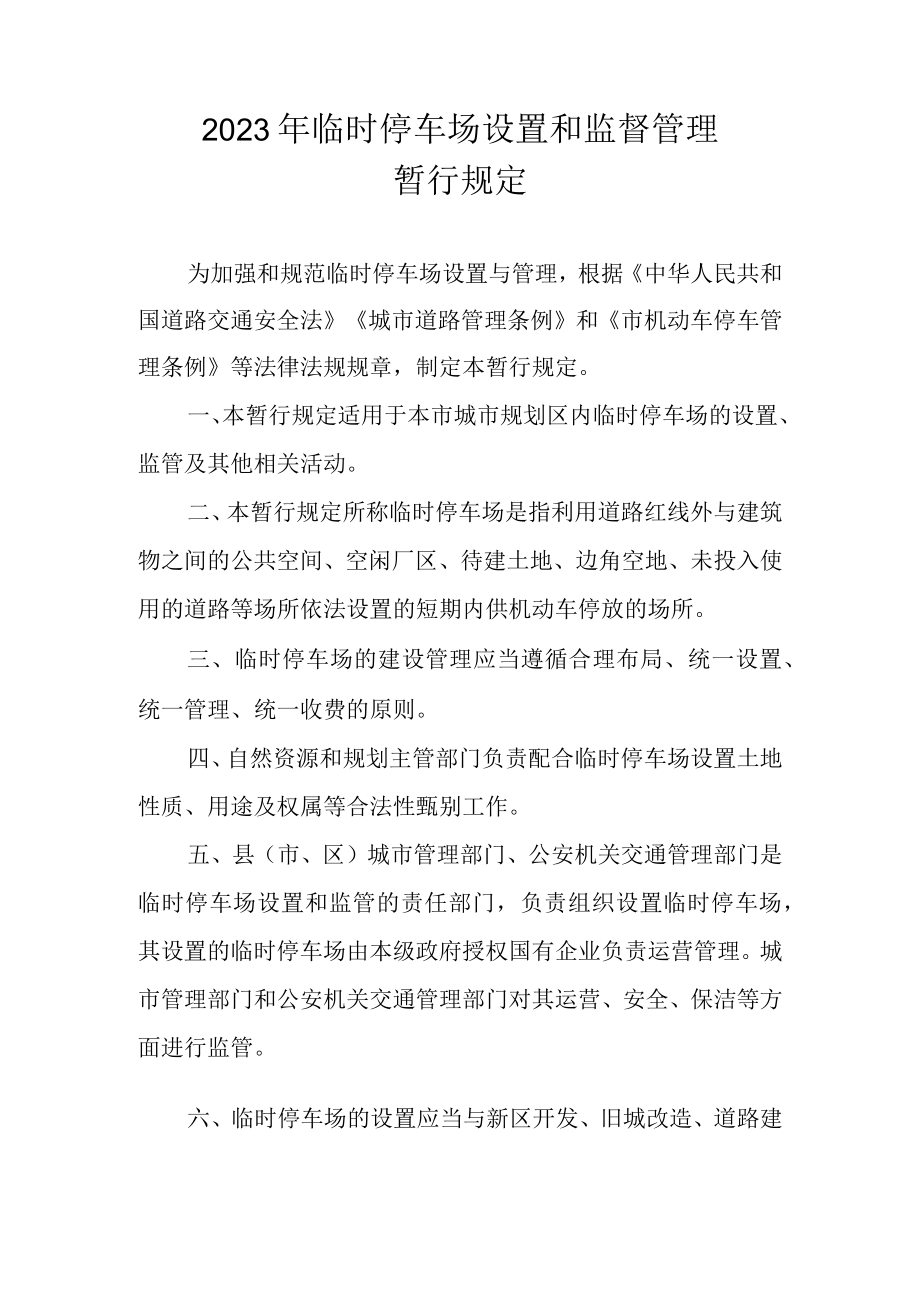 - 2023 临时 停车场 设置 监督管理 暂行规定