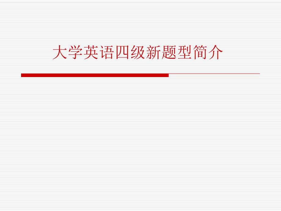 3、根据新题型的说明,原复合式听写调整为单词或者词组听写,短文长度及难度不变。o 取消句子的听写,听写变成全部考察单词或者短语。改革前的复合式听写,要求考生根据听到的内容写出3个句子和7个单词。新四级要求考生在听懂短文的基础上,用所听到的原文填写空缺的单词或词组,共10题。短文播放三遍,注意停顿的短文播放三遍,注意停顿的时间估计会取消时间估计会取消。评析o 对于此番变化,虽然考生需要听的内容多了,但可以结合全文的意思来完成填空,实际是降低了难度。o 现行的四级考试是听写3个句子,每句2分,共6分,所听写的句子对于很多考生来说都过长了,学生得分率很低。改成单词或词组之后,相比之前的句子来说,难度降低