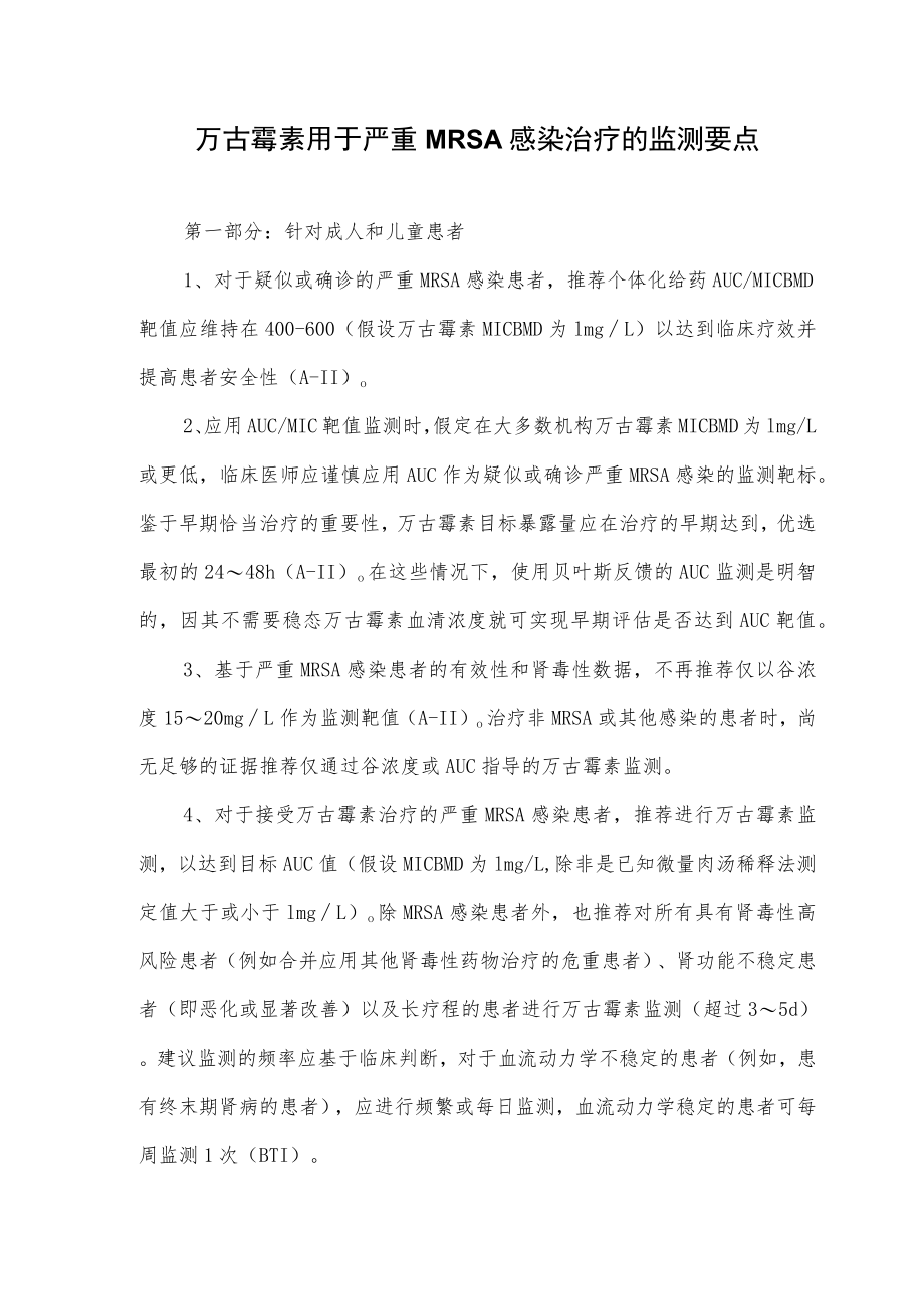 万古霉素用于严重MRSA感染治疗的监测要点.docx