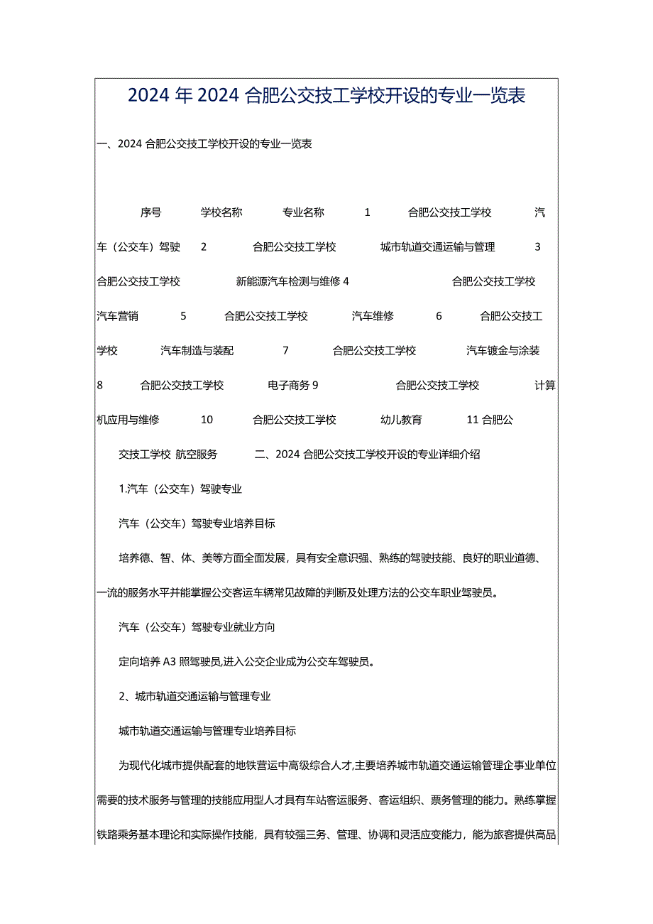 2024年2024合肥公交技工学校开设的专业一览表.docx