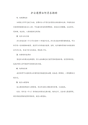 本文(护士遇事如何寻求帮助.docx)为本站会员(p**)主动上传,第壹文秘仅提供信息存储空间,仅对用户上传内容的表现方式做保护处理,对上载内容本身不做任何修改或编辑。 若此文所含内容侵犯了您的版权或隐私,请立即通知第壹文秘(点击联系客服),我们立即给予删除!