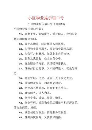 本文(小区物业提示语口号.docx)为本站会员(p**)主动上传,第壹文秘仅提供信息存储空间,仅对用户上传内容的表现方式做保护处理,对上载内容本身不做任何修改或编辑。 若此文所含内容侵犯了您的版权或隐私,请立即通知第壹文秘(点击联系客服),我们立即给予删除!