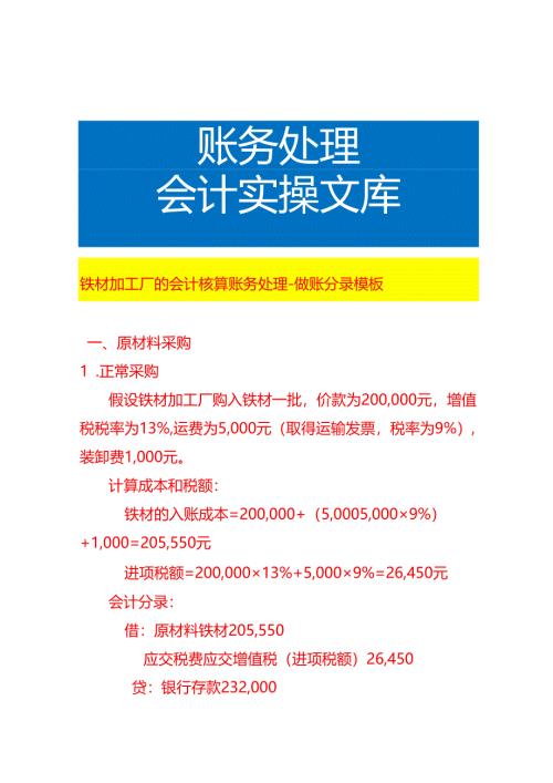 铁材加工厂的会计核算账务处理-做账分录模板.docx