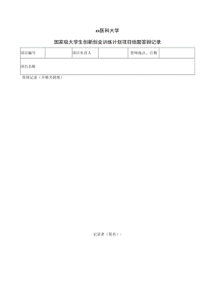 本文(xx医科大学国家级大学生创新创业训练计划项目结题答辩记录.docx)为本站会员(p**)主动上传,第壹文秘仅提供信息存储空间,仅对用户上传内容的表现方式做保护处理,对上载内容本身不做任何修改或编辑。 若此文所含内容侵犯了您的版权或隐私,请立即通知第壹文秘(点击联系客服),我们立即给予删除!