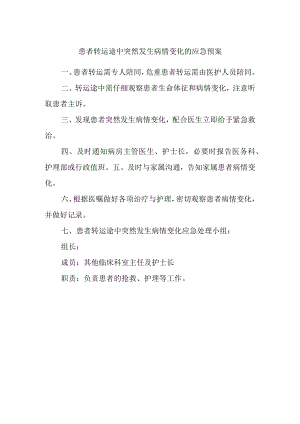 本文(患者转运途中突然发生病情变化的应急预案.docx)为本站会员(p**)主动上传,第壹文秘仅提供信息存储空间,仅对用户上传内容的表现方式做保护处理,对上载内容本身不做任何修改或编辑。 若此文所含内容侵犯了您的版权或隐私,请立即通知第壹文秘(点击联系客服),我们立即给予删除!