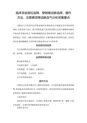 临床采血部位选择、穿刺桡动脉选择、操作方法、注意事项等动脉血气分析检查要点.docx